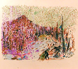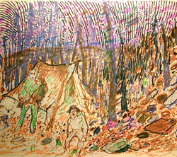 Campement en Forêt 46 x 61 cm (18 x 24 pouces) Dessin crayons feutres couleurs |