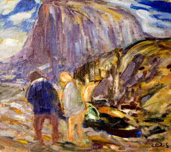 | 2 Trappeurs près d'un canot (Riviere Georges Ungava) (1950) 50.8 x 61 cm (20 x 24 pouces) Huile |