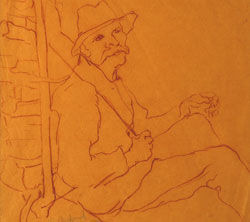 | Portrait d’un chevrier montagnard (Val d'Anniviers, 1928) 29.2 x 34.3 cm (11.5 x 13.5 pouces) Sanguine sur papier brun |