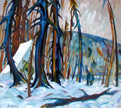 | Trappeurs dans la neige (1957) 82.5 x 81.3 cm (32.5 x 32 pouces) Huile |