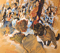 Le Chevrier (Val d'Anniviers, 1928) 34.3 x 23.2 cm (13.5 x 11.5 pouces) Crayon couleur sur papier brun |